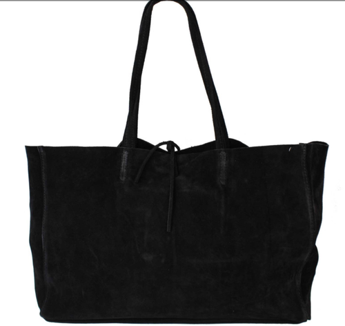592 Italian Black Suede Travel Bag Tie Closure JIJOU CAPRI
